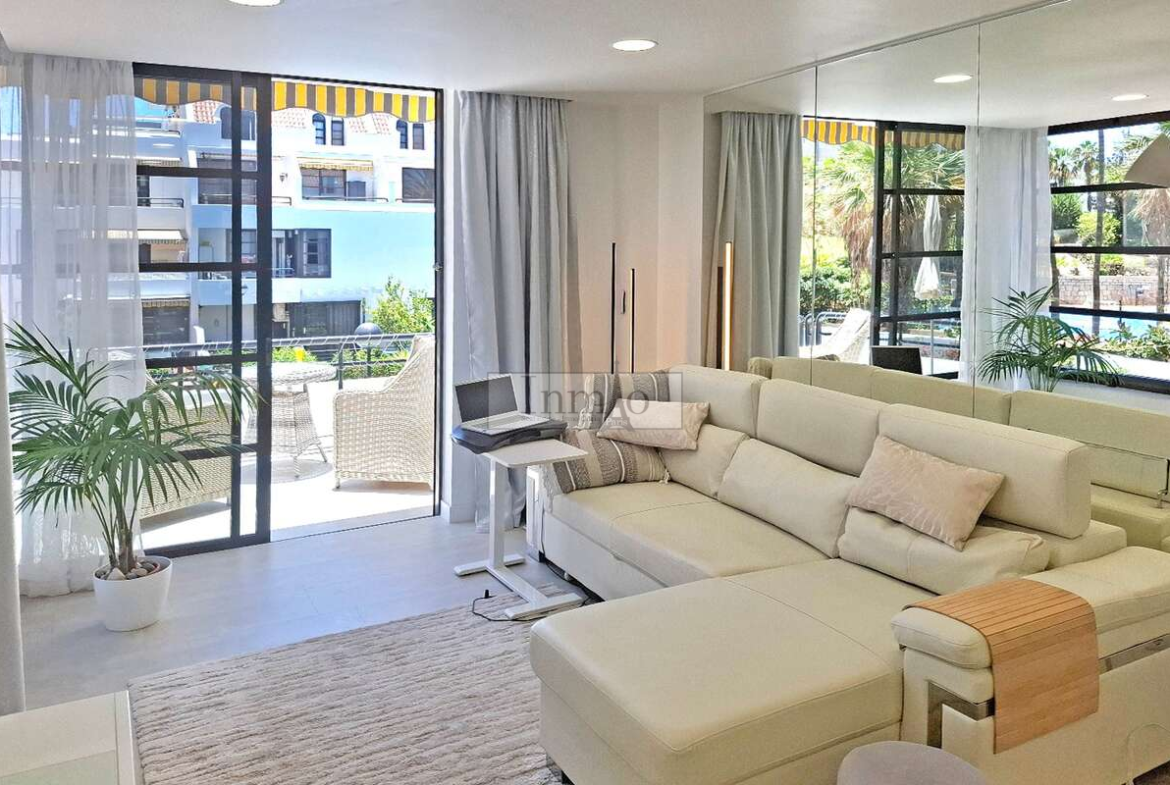El apartamento ofrece un estilo contemporáneo y minimalista, equipado con aire acondicionado para garantizar el máximo confort durante todo el año. El complejo dispone además de zonas comunes ajardinadas y una piscina comunitaria, perfecta para relajarse y disfrutar del clima privilegiado del sur de Tenerife.