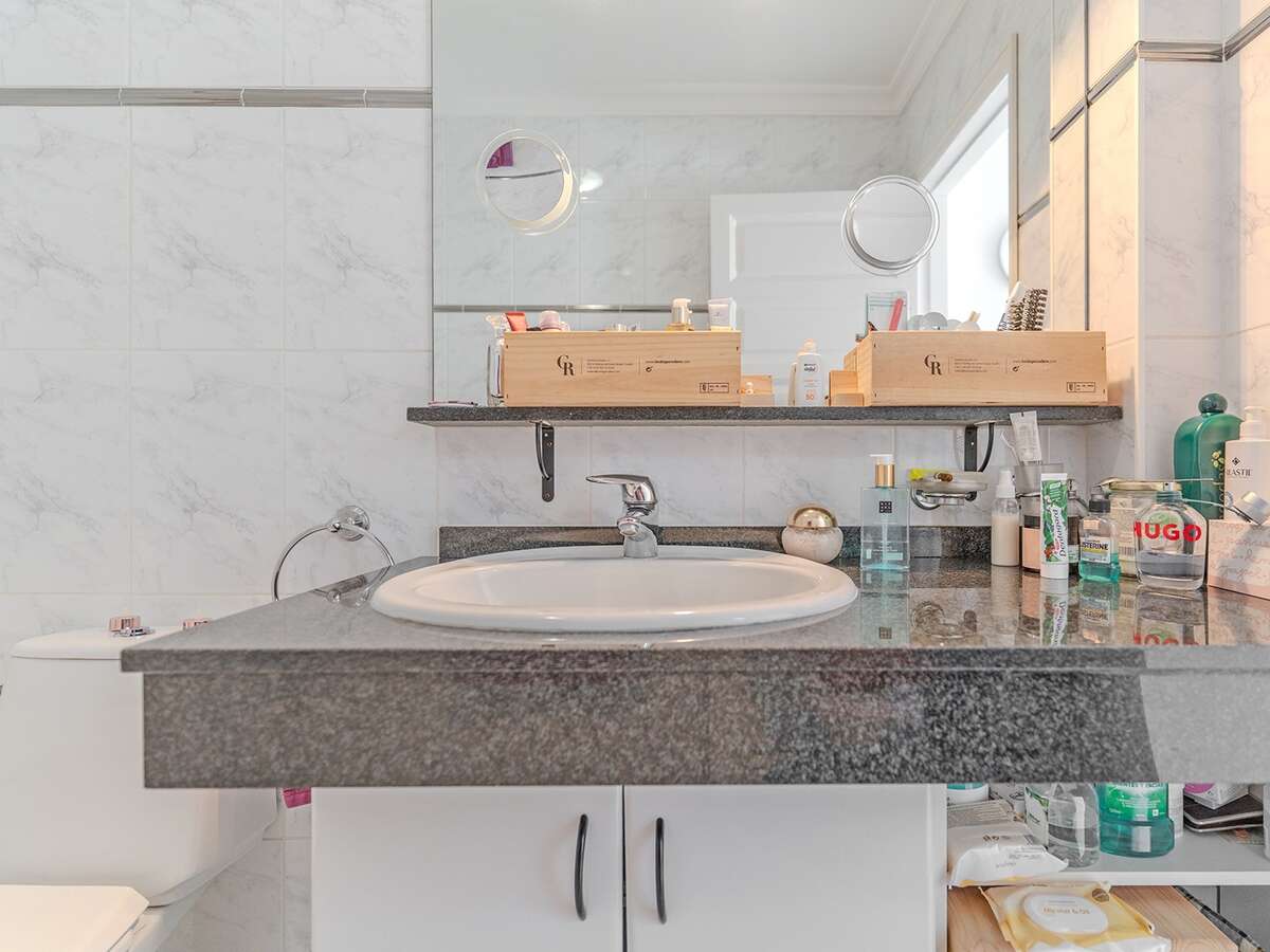 La planta superior alberga el dormitorio principal, también con armario empotrado, y un baño en suite con ducha, brindando un entorno íntimo y confortable.