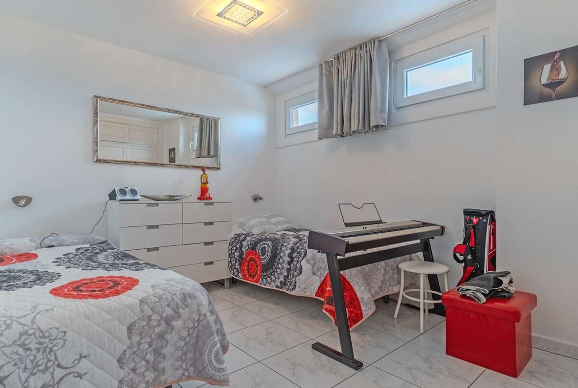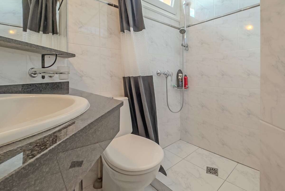 La planta superior alberga el dormitorio principal, también con armario empotrado, y un baño en suite con ducha, brindando un entorno íntimo y confortable.