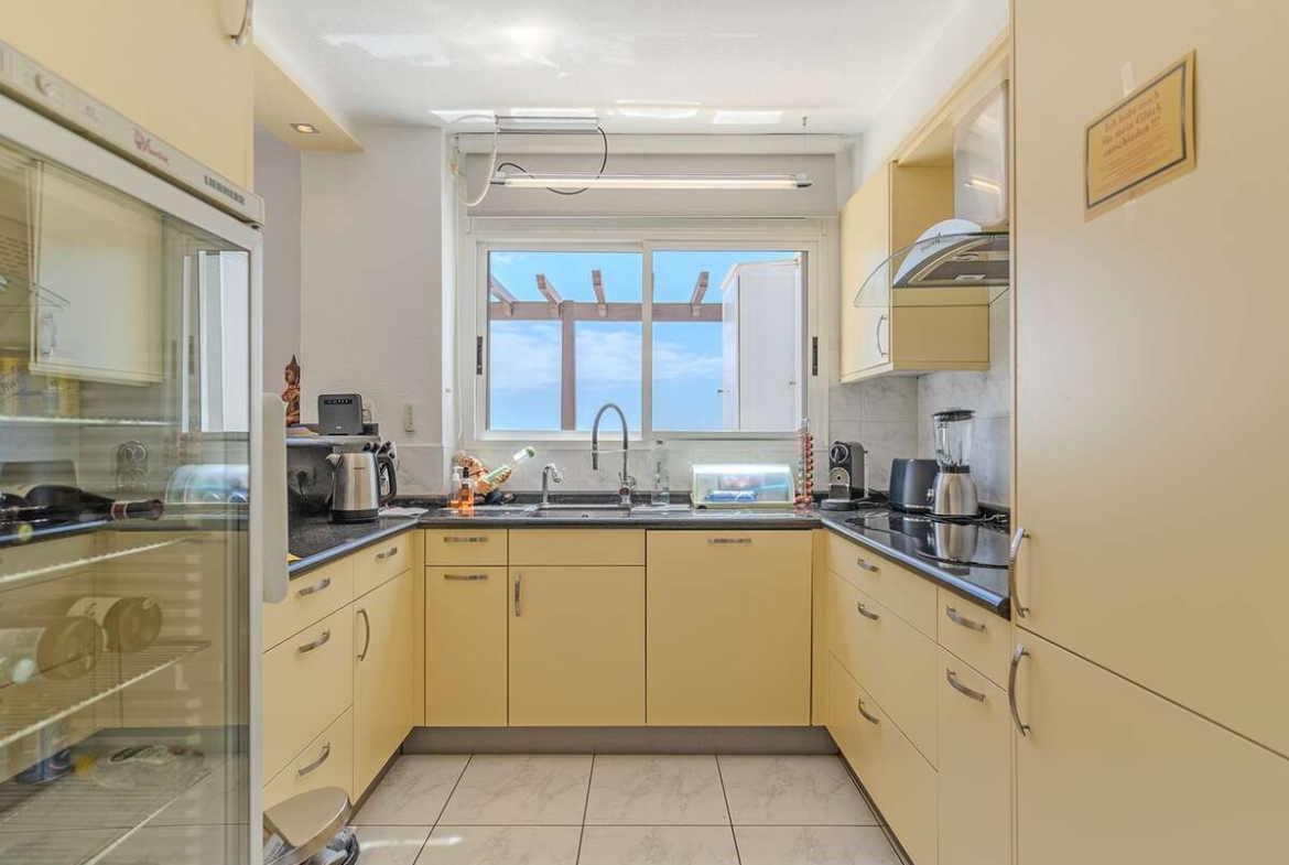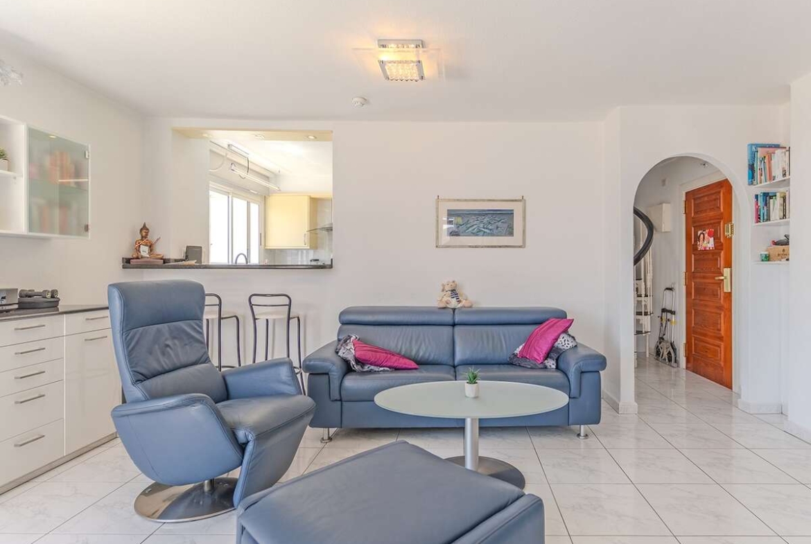 La propiedad cuenta con una superficie total construida de 164 m², de los cuales 92 m² corresponden a la superficie útil interior, y 72 m² a una impresionante terraza que envuelve el apartamento. Esta amplia terraza ofrece vistas espectaculares tanto al océano como a las montañas, y gracias a su orientación y diseño, permite disfrutar de zonas soleadas y sombreadas a lo largo del día, creando distintos ambientes para el descanso o el ocio.