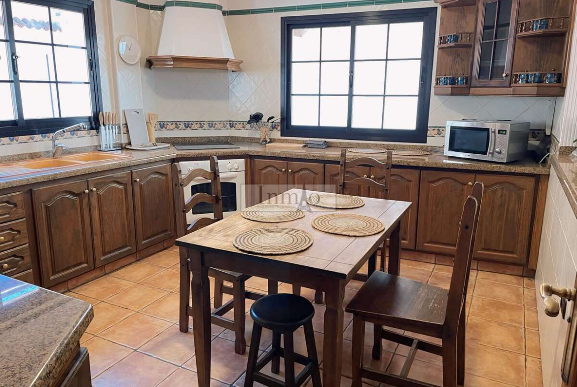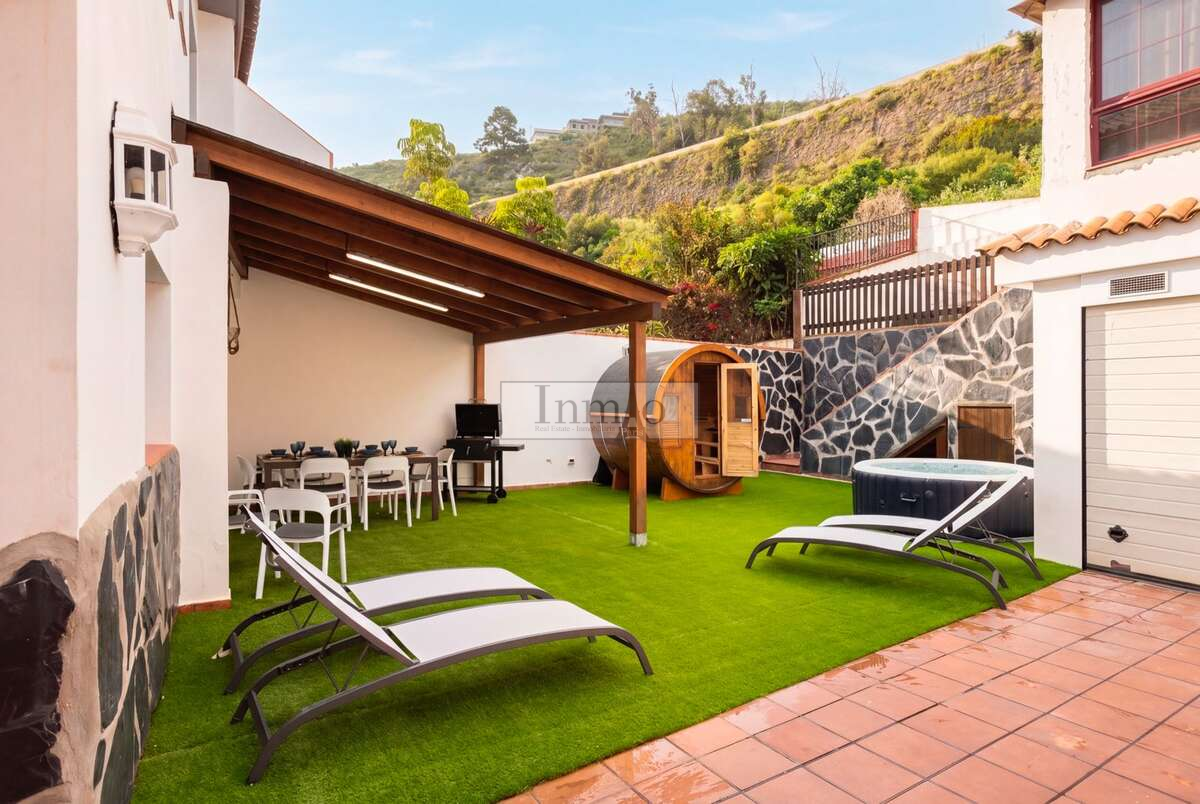 La villa cuenta además con amplias zonas exteriores que superan los 180 m² entre terrazas, pasarelas y jardines, diseñadas para disfrutar del clima privilegiado de la isla, incluyendo una gran terraza equipada para comidas al aire libre y una exclusiva zona de barbacoa ideal para reuniones y celebraciones. Dispone también de aparcamiento privado y garaje, aportando comodidad y seguridad.
