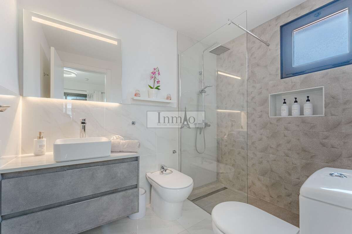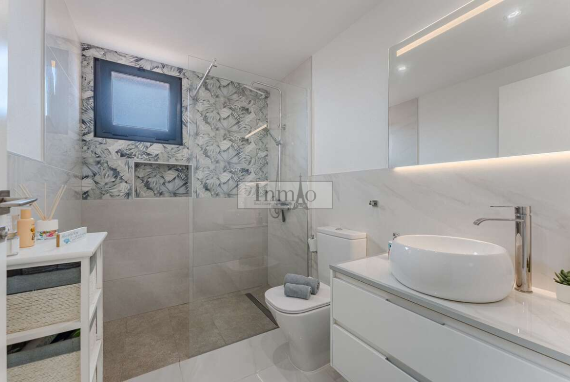 El corazón de la vivienda es un espacioso y luminoso salón comedor con cocina abierta totalmente equipada, perfecta para disfrutar de momentos en familia o con amigos. Además, cuenta con una espectacular terraza de 73 m² donde podrás relajarte y disfrutar del aire libre. El mobiliario es nuevo y de primeras calidades, lo que aporta un toque de elegancia y confort a cada rincón del hogar.