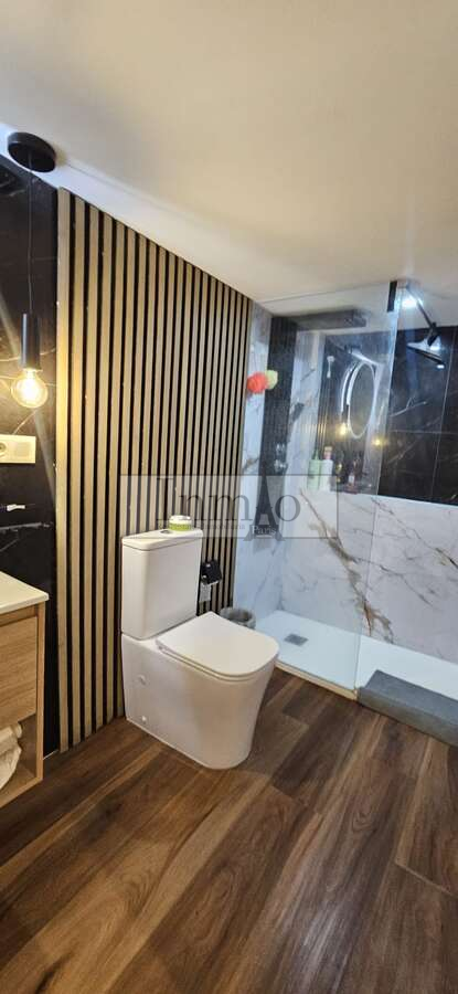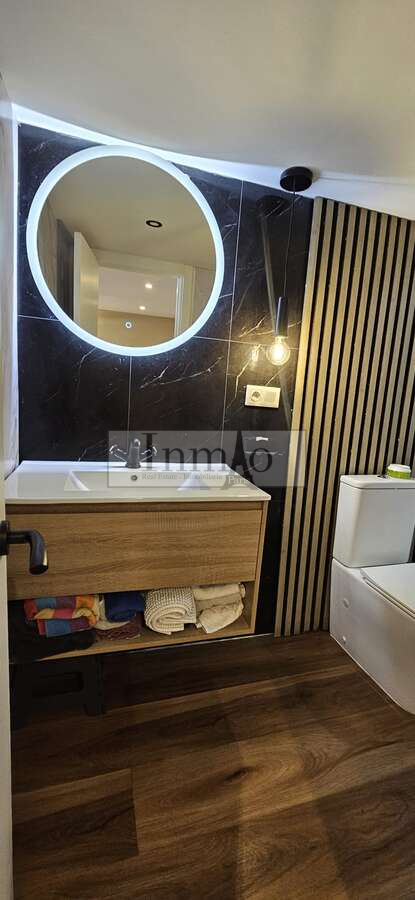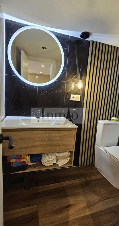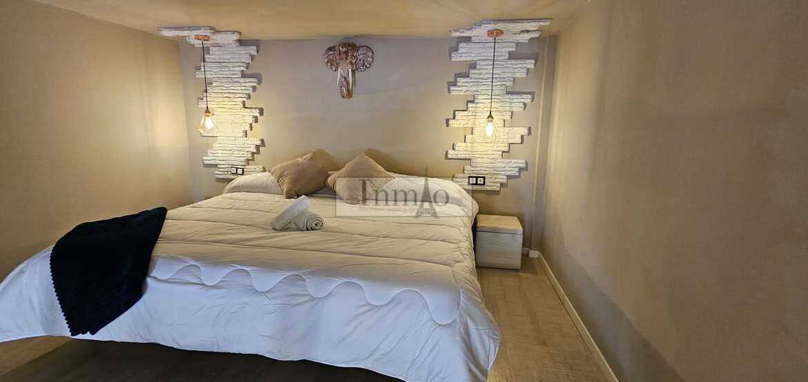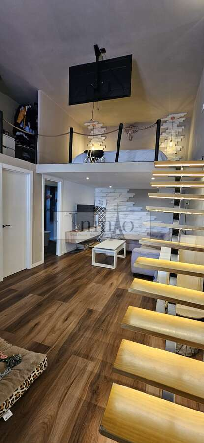 A través de una escalera interior se accede al dormitorio abierto, que aporta amplitud y luminosidad al conjunto de la vivienda. El apartamento cuenta con aire acondicionado, garantizando confort durante todo el año.